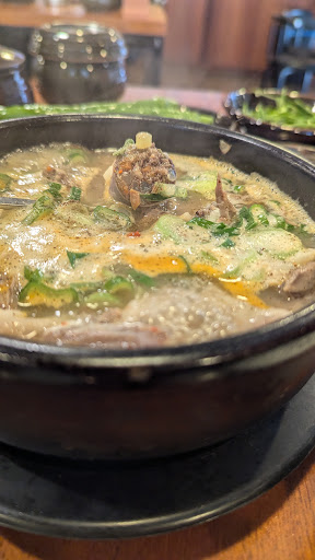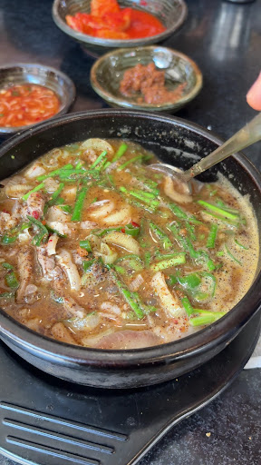 Read moreOne of the best meals of my whole life. I don't speak any Korean at all so I was very intimidated to write my English name on the waiting list but it worked out and I got seated and there was already the BonChon and then they just brought out food. I didn't even order and it was exactly what I wanted which was the stuffed Korean sausage sundae. He will immediately understand the rich broth and set of flavors is why it takes about 30 minutes to get a table around lunch time. The staff was very quick and friendly and the mixture of the ingredients like eating the green pepper between bites and adding all the dipping sauces made it truly truly unparalleled flavor profile and experience. Some of the best intestines and a true feeling of Korean ambiance at a small table with small chairs. I can't get over how rich the profile of flavors were and would come here constantly if I...
