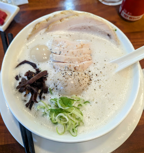 This place is all the hype if you love ramen. The chicken broth is so rich and savory that I just shovel it into my mouth without much thought. The chicken was yummy. It melted right in my mouth. I was always digging around in my bowl for any remaining morsels. I, lowkey, could not finish all the noodles, but everything else was gone. I knew the place was gonna be delicious because stepping into the restaurant, the aroma was there. Letting me know exactly what my tastebuds were in for. Ohh, alao the sides were there with some kimchi and raddish. I love a pickled raddish, and korea never fails to provide.