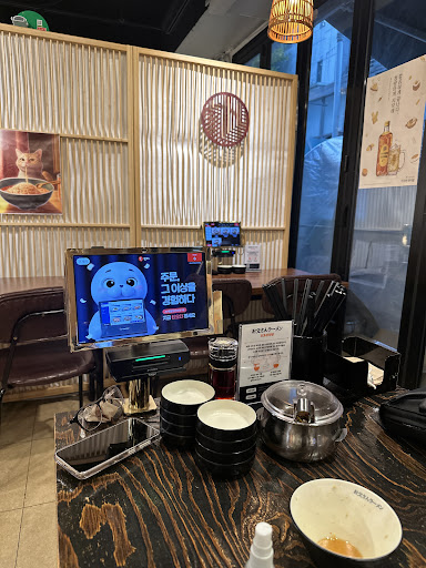 The owner and his son (who's typically in after 6pm and speaks fluent English) are super super kind people. The shop, small and cozy, is a great place to relax and decompress over some good food. And you order through a Kiosk so it's good for foreigners who don't know Korean.