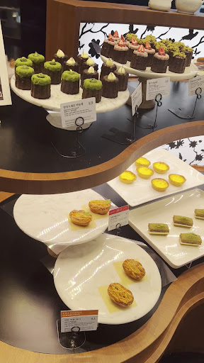 I heard this place serves very good pastries and its like one of the best in Seoul and is comparable to those in France. I walked there and I was quite shocked at the ambience and the decor of the place it looks so high end it can really compete with how a fine dining restaurant looks like. The place looks rather big, but I think the middle is hollow so the moment you walk into the shop you are just walking in a circular direction. The items are well categorized into sections so its quite easy to look for the items you want. The pastries really look very exquisite and all are tempting to try but I just asked the cashier to recommend me a few. Nice and very detailed desserts, like the apple I ordered, nicely filled with apple cubes in the interior . The choux also tasted good and jammed packed with cream. There were seats around so I just picked an empty place and sat down. I believe there is another level lower which has more seats, but I didn't explore because I was there rather late and they were like 20 mins to closing. Expensive? Yes a little, but I think it's pretty alright for the quality of the pastries they serve. It's a pretty good place to find friends to chill and relax and share...