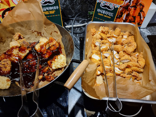 Read more가격=휴일 점심기준 17000원 마르게리타피자=굉장히 자유분방한 조그만한 모짜렐라 리조또=급식스프에 식은밥말기 쉬림프피자=칵테일새우 순살치킨=큰 치킨텐더(확실히 저렴한 대용량 치킨텐더) 아메리칸트리플피자=고르곤졸라치즈+체다+모짜렐라 콘치즈=콘치즈x콘마요네즈O 스파이시 떡볶이=고추장 푼 국물에 떡향첨가 수박샤벳트=대용량 수박바 크림파스타=시중소스 테이블=닭장