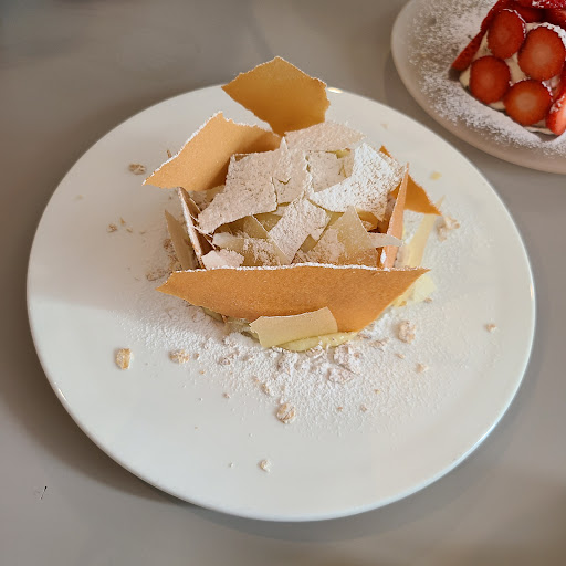 The cake is called Strawberry Milk, and it's all about strawberries! This yummy strawberry treat is made of ice cream, cream, mousse, lava, and dried fruit of strawberries. The cookie looks ordinary but surprises you with its buttery crispiness. It goes so well with their fruity and creamy strawberry cake. It's a great place to relax and enjoy some...