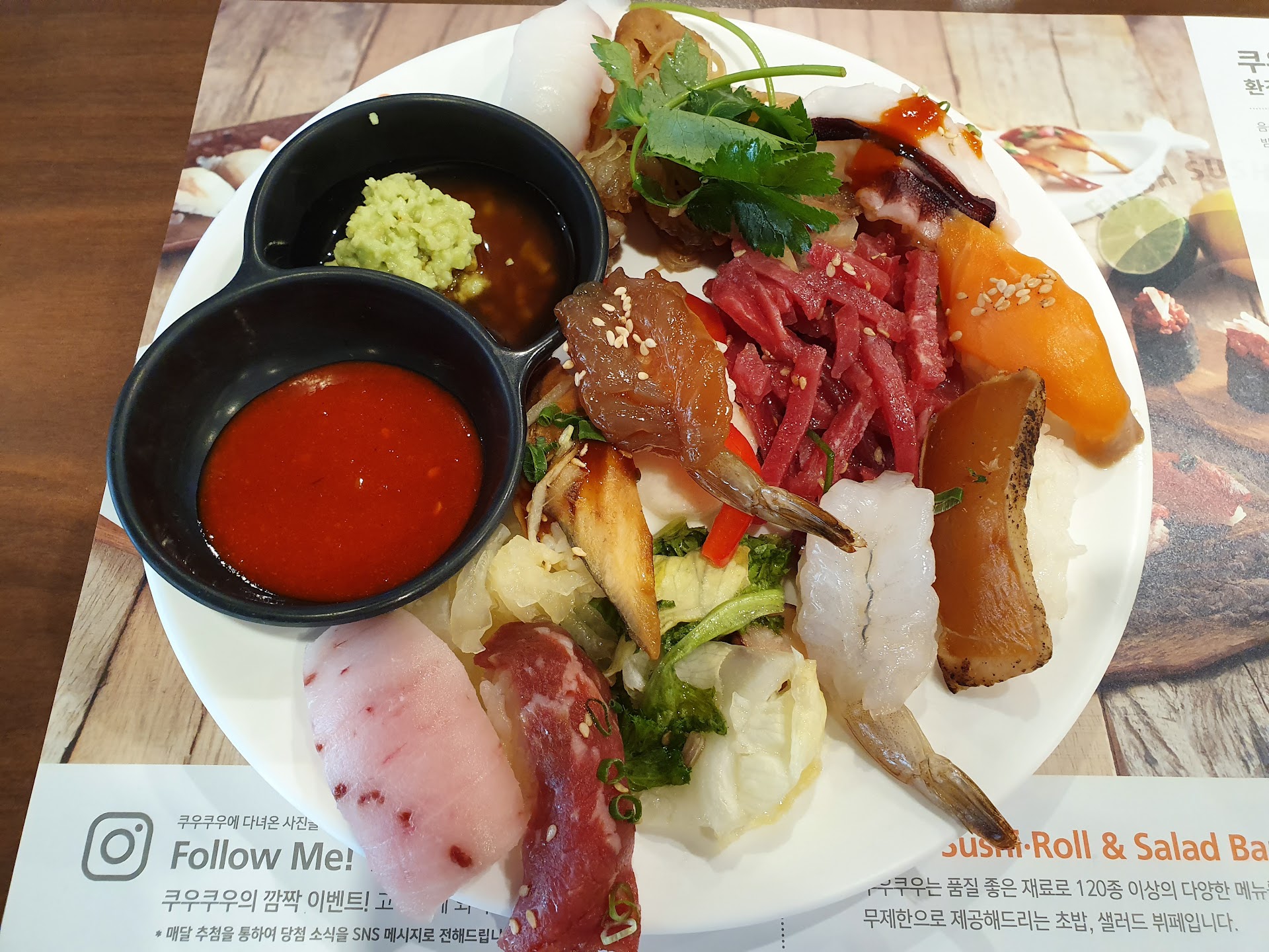 Food was subpar, fish lacked any flavor or character. The sushi all tasted the same, the cooked fish was dry and tasteless, the rice was mushy...the only good thing was the fountain soda! Don't think I will get food poisoning, but would not be a surprise. Would not recommend to anyone...