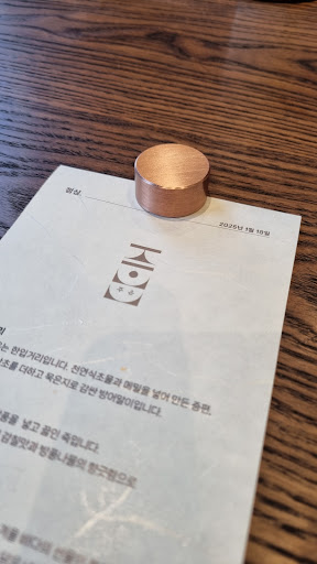 Read moreToday's lunch was a very special experience, and I had an unforgettable meal at Jueun, a top-class Korean fine dining restaurant. The modern yet luxurious atmosphere of the restaurant was perfect for a date or to celebrate a special day. The date was printed on the menu, which gave a very detailed impression. In particular, the chef's special course stood out with its delicate plating and fresh seasonal ingredients for each menu. The Japchae was truly exquisite. It broke the stereotype of existing Japchae and was a traditional Korean Japchae without noodles, and the sesame oil flavor was more than enough to stimulate the appetite. The friendly service of the staff was also impressive. The alcohol was also recommended through pairing with the food, and it went well together. If you want a special experience for a special day, I highly recommend it.