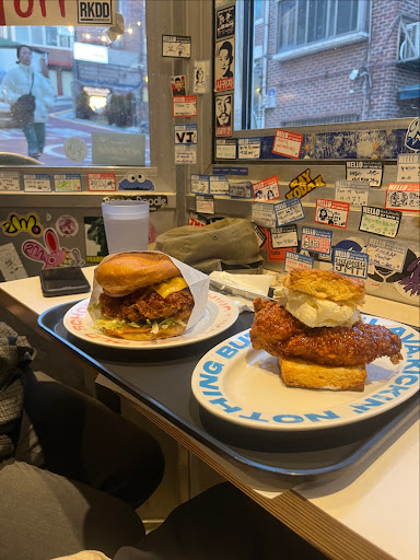 Secondly, you have to know that you will find only Fried Chicken Burger there and that you will have the choice between only five or six differents burgers, but all of thoses are just EXCEPTIONAL. I also MUST speak about the sauces you can take with your burger. You have the choice, when you order your burger, to put a sauce that have three levels of "spicy". Even if you can choose to not have any sauce in your burger, it would be a mess to do so. The first level sauce isn't THAT spicy and is just DELICIOUS. Do not miss it out. Being from Belgium, it is very hard for me to find good fries abroad my country... but the ones of Rockadoodle are probably ones of the bests, if not the bests, fries I ate in Korea, or even in Asia. Drinks are also unlimited.
