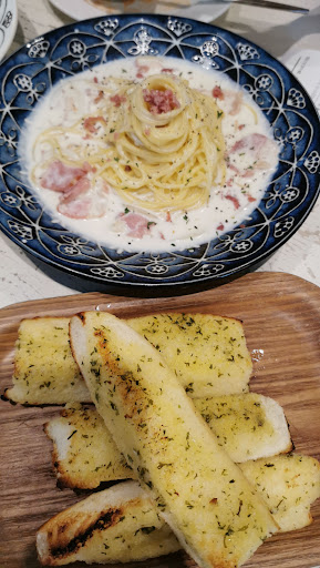 Got the carbonara, ragu and garlic sticks. All of them way to sweet, ragu was made of pork instead of beef. Carbonara had no eggs only cream and the sauce was too loose and sweet. Ridiculous small amount of hard cheese on top of both. Didn't taste like parmesan, but a cheaper version. Garlic sticks were like a dessert because of how sweet it was.