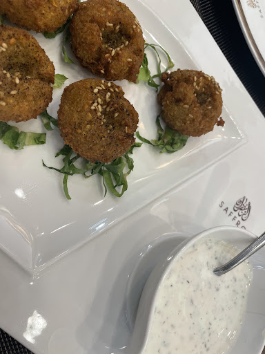 We recently dined at Saffron and ordered three vegetarian dishes — hummus, tabbouleh, and falafel — along with two Kashmiri breads. The staff and hosts were warm and welcoming, and the service from the waitstaff was great. However, the overall experience left us a bit disappointed.