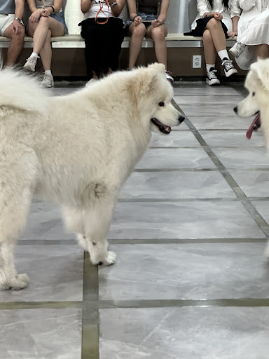 Read moreThe previous reviews are on point. I personally have a Samoyed back home in the States. I was feeling a bit of withdrawal from not seeing my dog for a few days, so I wanted to visit here to see some Samoyeds to feel a little better. It is a one-time experience and my sister and I did not stay very long. There is an entrance fee and after paying, you put your belongings in a locker. Afterwards, you can walk around the first and second floors. There are several Samoyeds and they are definitely cute. However, they only come to you when you have the small amount of kibble they provided to you in your hands. We mainly just sat back and watched the dogs, because it was kind of sad seeing the crowd of people around them. We did not want to be an added stressor. The behaviors they displayed were so different from my dog, as my dog comes to you whether or not you have a treat. My dog also gets super excited when seeing new people. We left with a bittersweet feeling afterwards. We were happy to see the happy faces inherent in the Samoyeds, but sad to see the social environment. Also, I would say it is normal that the dogs interact mainly with the staff. They are basically like their family. Pros: cute faces, cute merchandise for sale, & staff are nice Cons: too crowded, pricey, & people sometimes pet them aggressively to the point that the dogs try to escape and hide… imagine someone constantly touching you all day and being all up on your face. Be gentle and give them some...