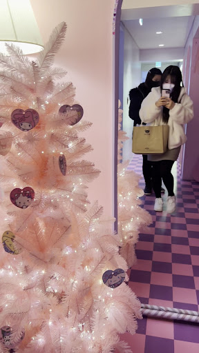 Second floor is where you do NEED a reservation. I made my reservation through Naver in their Instagram bio link: @sanrio_lovers_club. Make sure to create a Naver account first (this was the biggest struggle for me because I needed an international ID verification & it took 1-2 days to process with my USA passport). They will check your reservation on Naver when you line up outside & you will get a sticker to go upstairs.