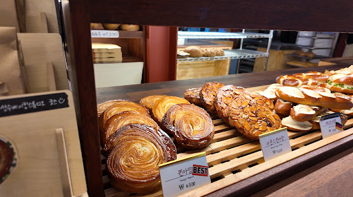 Im a huge fan of pastries and morning bread (Korean most bread shop sell desert bread) i pined here for long time cus they also have class. I guess i disappointed maybe i had big expectation.. most disappointed bread was sourdough its inside was crumble and kind of dry.. and baguette also quite hard its hard to my morning…(even i got feeling dont want listen their class…) but in other hand they sold pretzel its kind if rare menu and seems like perfect color i bought Leek cream with pretzel that was good next time i want try to buy plain pretzel Anyways.. in Korea its kind of hard to find this much standard plain bread shop so i guess for just lokking for standard bread person here will not be good but if you are quite huge fan of morning plain bread.. uhm price is nice taste also middle so i...