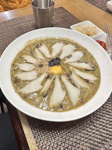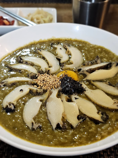 Read moreIt's very conveniently located, just directly outside Myeongdong station. However the entrance of the restaurant it quite small you might have missed it just like me and actually did a turn left into the small lane. Was there on a weekday afternoon for lunch and the place was quite packed. I went in but was given a seat immediately. If you are here for the first time, there is only 1 item that is a "must try" in the menu, and this is the item that you will see in almost every table, which is the premium abalone porridge. I ordered that, as well as the ginseng juice. Quite used to drinking ginseng juice in South Korea although I don't think you can get any juice from ginseng but it tastes more like ginseng powder with milk. Didn't take long for the abalone porridge to be served. The presentation looks very standard as what you see in many of the pictures and the abalone is very nicely arranged on the porridge with an egg yolk in the middle. Taste wise, I expected it to be more flavourful but unfortunately it wasn't. There wasn't much taste in the porridge but the combination of the abalone and the porridge went well together. I thought the green in the porridge was because of seaweed but didn't bring out any taste. I would say the dish was quite normal but was definitely value for money with the premium ingredients inside the...