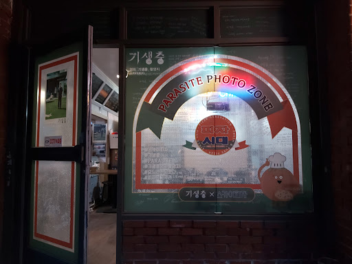 서울 동작구에 위치한 스카이피자. 영화 기생충 주인공인 기택의 가족이 돈을 벌기 위해 피자 박스 접는 아르바이트를 하던 곳으로 실제 가게이름은 피자시대가...
