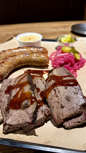 Food: They have a lot of the right items listed (alas, no mac ‘n’ cheese). The potato salad is nice and is well seasoned with nice chunks of potato that are not overly mushy. The bread is buttery and fluffy. However, I was disappointed by everything else. Although the beans weren’t bad, they were too sweet (possibly brown sugar added?). The pickles are sweet rather than dill. There are no raw onions and the pickled onions are also sweet. All of the bbq sauces are sweet. I don’t generally go for the mustard bbq sauce, but it was the best of the offerings. The meat tastes like they used liquid smoke rather than actually smoking the meat. There was what looked like a bark on the brisket, but it tasted more like a seasoning crust rather than a true bark. The sausage was also lack luster. Overall, it wasn’t terrible, but it also didn’t live up to the hype from...