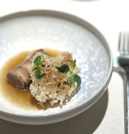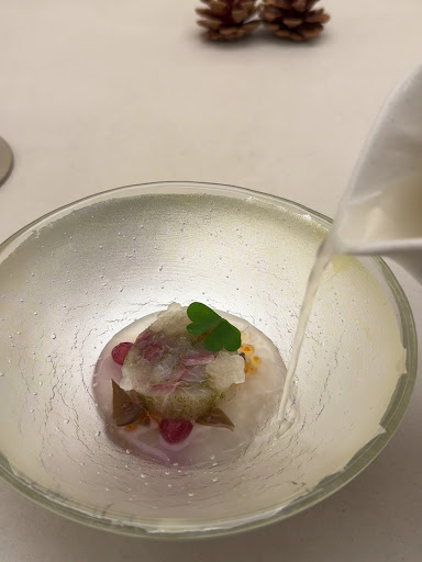 The amberjack with pear and blueberry broth was such a refreshing dish, and I loved the snow crab with pine nut sauce. The mix of beancurd and crab intestines added an extra layer of richness that I couldn’t get enough of. I’m a huge fan of raw seafood, so this was a dish I absolutely loved. Even something as simple as fish with sea squirt and cabbage was packed with flavor—it was a perfect start to the meal.