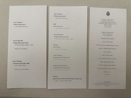 The quail with truffle was delicious, though I wish they had given a little guidance on how to cut into it when serving. Still, the flavors were on point. Unfortunately, the Korean beef ribeye didn’t live up to expectations—it had a tendon texture that made it a bit unpleasant to eat, which was a shame because everything else had been so amazing up until then. But the Amadai fish made up for it. It was creamy, tender, and honestly, I could have had just that with my wine and been perfectly happy.