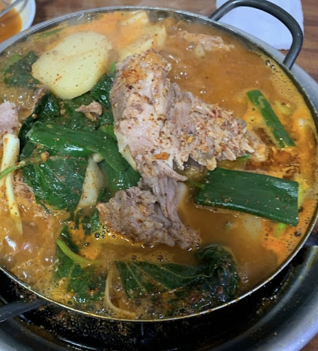 "인생 감자탕을 맛본 즐거운 식사"