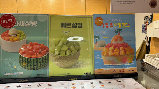 Bingsu place, based on the images you provided: Sulbing (Location: Assumed South Korea based on Bingsu and text) Rating: ⭐⭐⭐⭐⭐ (5/5 stars) As a seasoned Google Maps reviewer and a self-proclaimed dessert connoisseur, I recently had the absolute pleasure of visiting Sulbing, a bingsu haven, and I'm still dreaming about the delightful experience. Upon entering, I was immediately drawn to their vibrant and enticing menu displays. It's clear they pride themselves on fresh, seasonal fruits. The "Watermelon Sulbing" and "Fresh Melon Sulbing" looked incredibly refreshing, but what truly caught my eye was the "Mango Island" bingsu, prominently featured as a "Recommended" item – and for good reason! My choice, the Mango Island bingsu, arrived looking exactly as magnificent as advertised. It was a generous, artfully crafted mountain of finely shaved ice, absolutely overflowing with perfectly ripe, cubed mangoes. The vibrant orange of the mangoes was beautifully contrasted with what appeared to be diced strawberries or a similar red fruit, adding another layer of sweetness and a pleasant textural variety. Topping it all off was a scoop of what I believe was mango ice cream or sorbet, and a dollop of creamy white ice cream, creating a symphony of tropical flavors. What really elevated this bingsu, beyond the main presentation, were the thoughtful accompaniments. A small pitcher of condensed milk was provided, allowing for personalized sweetness – a crucial detail for bingsu lovers. But the real surprise and delight was the separate bowl of what looked like sago pearls in a creamy, coconut-infused liquid. This unexpected addition provided a fantastic textural contrast and a refreshing, subtly sweet complement to the main bingsu. The quality of the ingredients was evident; the mangoes were fresh, sweet, and juicy, and the shaved ice itself was incredibly fine, melting delicately in the mouth. The portion size was substantial, easily shareable, making it perfect for a couple or a small group. Sulbing has truly mastered the art of bingsu. From the inviting atmosphere (implied by the clean presentation and inviting menu) to the impeccable quality and thoughtful presentation of their desserts, it's an experience not to be missed. If you're in Korea and craving a refreshing, delicious, and visually stunning dessert, look no further than Sulbing. Highly, highly...