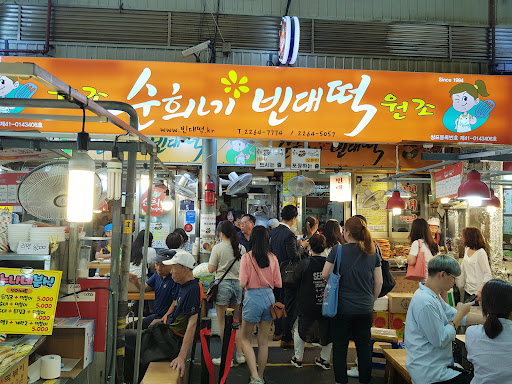 ย ย ย Read moreA little place serving mung bean pancakes with vegetables and meat is located in the bustling Kwangjwang-sijang (market). The pancakes were more like deep fried, and therefore crispy and super greasy. It was good, but it wasnโt really overwhelming though. I would probably find the similar or better quality in any other markets in Korea. However, this place seemed certainly over hyped, and it was very crowded with the tourists. The seating area was obviously tight and...