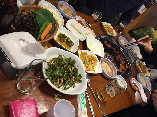 I recommend this place if you are close. Perhaps the landmark in the neighborhood. This is an old and popular Korean BBQ restaurant. Most visitors are people living nearby. It looks old from outside. But, we were surprised it was quite new inside. Spacious, clean and well-maintained. Employees were very kind. Asked things to get refilled several times. They served quickly cooked what we ordered. Grilled pork ribs(15,000 won per person) were juicy and a lot comparing to other restaurants. Side dishes weren't many. But, they all were great. Rice is only 1,000 won and kimchijjigae(kimchi soup) is included. It seems their galbitang(rib soup) is also popular. They provide a free...