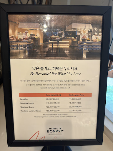 ย ย ย Read moreThis restaurant is located inside JW Marriott Hotel in Dongdaemoon. The ambience is nice--fairly quiet and has dim lighting. I thought the service was pretty good, and the food overall was good. I especially enjoyed their wonderful selection of desserts and grilled lamb chops. But I have to say that I was not so impressed with their sushi, sashimi, and fried rice, which are my favorites! The assorted sushi didn't taste too fresh as well as the sashimi. It was odd that they didn't have ginger and rakkyo, which are common side dishes. And, the fried rice was a bit hard for my liking. The price is quite expensive for dinner like most hotel buffet restaurants. For two adults, it was around โฉ200k, and kids under 35 months are free. Compared to our favorite buffet restaurant at Shilla Hotel, this place...