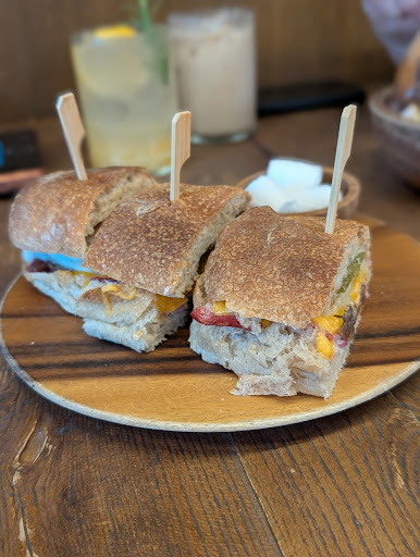 Grilled Sweet Fig Toastie We didn’t realize it wasn’t vegetarian, it came with both bacon and cheese, so our pescatarian daughter couldn’t eat it. That said, the sandwich itself was very good: the bread was fresh and the flavors well balanced.