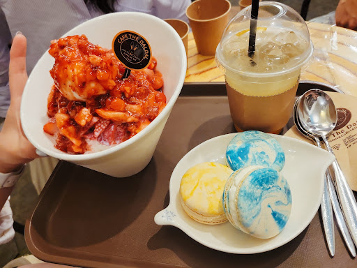 Everything was really pretty and the space is nice enough but all the food items were just alright. The strawberry bingsu was ok. The strawberries themselves weren't that sweet. The macarons have cream cheese in the middle and the outer layers were just a smidge harder...