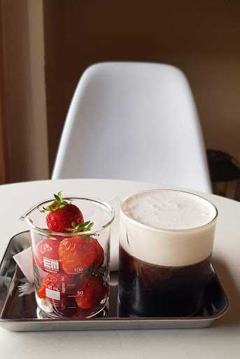 아인슈페너 7천원에 먹었는데, 솔직히...커피가 그렇게 맛있는건 아니었어요. 얼음이 들어가는걸 고려해서 좀 더 찐하게 내려줘야지 밸런스가 맞는데, 많이 싱거웠습니다. 하지만 딸기가 서비스로 나오는지라 그 부분에선 칭찬을
