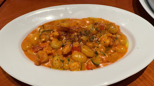 For our main courses, we opted for the Gnocchi Con Astice e Gamberi, a gourmet gnocchi dish prepared with succulent lobster and shrimp, all smothered in a mouth-watering cream sauce. It was an absolute delight, and we savored every single bite.