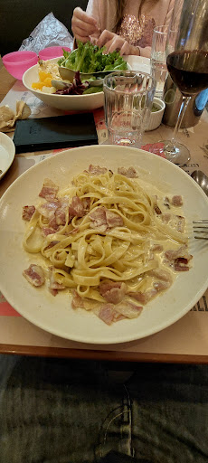 Let's start from the easiest part. Service is provided by staff that can barely say an English word. The word Toilet should be quite international, but to know where it was, I had to open Google Translate! The restaurant calls itself Italian Bistro. Well not to be ugly, but in Italy we don't have bistrot, eventually trattoria, osteria, locanda or ristorante! The food is just a sad bad imitation in the worst way of anything done in Italy. Considering the choice you have in Seoul about Italian restaurants, this is average. Meaning not that is not so bad, is actually terrible and so are all the others. If you are fancy to eat Italian in Seoul, just forget it. Probably any Korean restaurant is much better ! Here some pictures of what we got. A Carbonara pasta affogata in cream with boiled garlic !!! A margherita pizza which anything but mozzarella and tomato...no idea what was! A salad with sweet ricotta!!! Unfortunately when you are starving you can also reach the stage of having a meal here, but only...