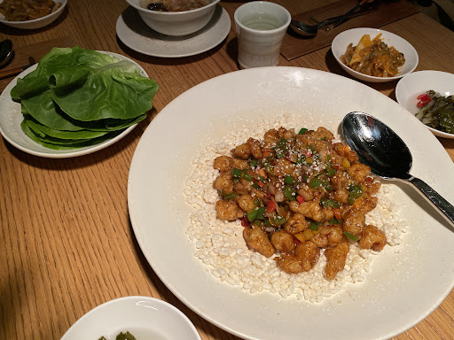 Its signature menu is Peking duck. You can also see ducks being baked in a oven next to the kitchen and the Chef comes to the table to carve the duck. Extra stir-fried duck with vegetables (์ค๋ฆฌ๋ณถ์) can be ordered at 10K.