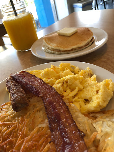 We ordered a bit of everything. Pancakes, waffles, French toast with sides of bacon and hash browns. I personally appreciated the small pot of coffee for easy refills. The only thing that would have made the breakfast even better is if they used fresh strawberries. I know that can make it more expensive, but we would have paid more. The waffles and pancakes were fluffy and moist. We all loved the hash browns- perfectly crispy. All the classic American condiments were available table-side.