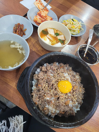 +: There are so many different dishes you can order and try. The Bulgogi Dolsot Bap 5 500 Won) was really delicious as well as the side dishes. The perfect amount of meat and rice. The Dolsot Bibimbap (5 500 Won) tasted great, perfect for vegetarians. Note: The red sauce on top of the bibimbap is a little spicy. My favourite dish so far is still the Bulgogi Dolsot Bap.