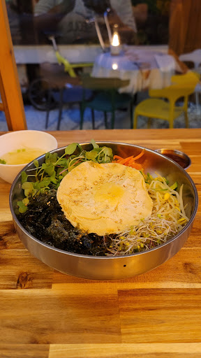 Read moreDelicious vegan restaurant! Served and owned by fellow vegans! As a solo traveler, I just want to try everything. So I got the bibimbap with an egg. This is their number 1 item, and I could see why. I ate this in less than 5 minutes. But I also ordered the Kim chi fried rice, which also comes with an egg. Everything was so good. Comes with a side of bean sprout type of soup and a couple bonchons. I devoured almost everything. The server was concerned and said not to feel pressured to eat everything. He even brought a takeaway box early. I did the best I could!