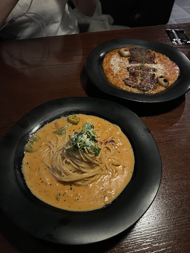 We had the shrimp rose pasta and tomato risotto with steak. Both had a little spice, which was nice. I honestly was blown away by the taste.