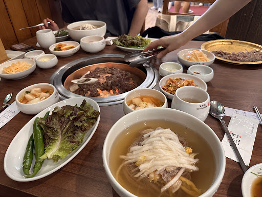 After my second visit I do believe that this is favourite cold noodle restaurant of the famous places in Seoul. Get there early as you will have to wait an hour and a half to get in if you come for lunch at prime time. The interior is super old school which makes sense as this is effectively an institution for nengmyeon. The meat selection is great and the sides are pretty well done. I would suggest not getting a marinated meat so that the flavour of the broth is not minimised. There is parking but you can more or less forget about it as you will be blocked in the car park at peak times. The place itself is large but the service is pretty decent and they are well staffed. Definitely a must visit if you’re in Korea. The fragrance of buckwheat and the slightly salty beefy broth mix perfectly. I will say the broth here is thicker than other places so you may find finishing the broth a little bit much.