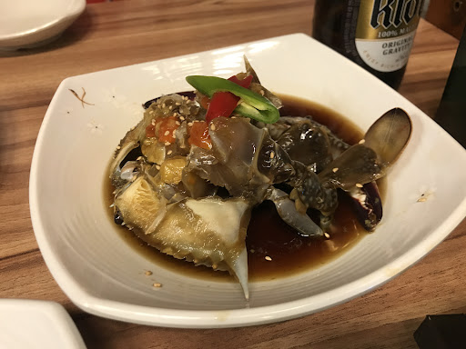 We ordered one crab set menu and one dried croaker set menu. We arrived at 8:40pm on a Tuesday and it was pretty empty at this time. We suggest getting there earlier as by the time we arrived the kitchen was closing up. We enjoyed the wide selection of side dishes, particularly the japchae and steamed egg. Top tip: to enjoy the crab the most we recommend squeezing the meat from the body onto the rice and mixing it together and have it that way. Adds a nice salty taste to the rice. The shell contains intestines and eggs so don't throw it away - best enjoyed with a couple of spoonfuls of rice mixed in with the shell...