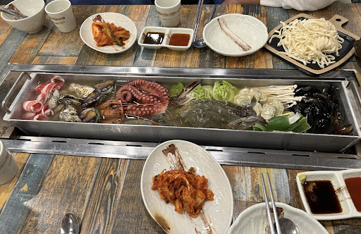 Read more우선 저는 해산물보다는 고기를 좋아합니다. 처음 나왔을때는 기대하게 만드는 비주얼입니다. 그런데 막상 첫국물을 떠먹었을때 글쎄요. 한마디로 이것저것 다넣고 끓인 해물 샤부샤부??인데 제 입맛에는 약간 비렸습니다. 직원 분들은 참 친절하신것 같습니다. 꺼멍문어전??이 오히려 생각보다 맛있었습니다. 그리고 우삼겹 추가는 좀 너무한거 같았습니다. 고기양도 양이지만 고기가 거의 부스러기로 나왔습니다. 고기 찌꺼기 추가 였을까요??