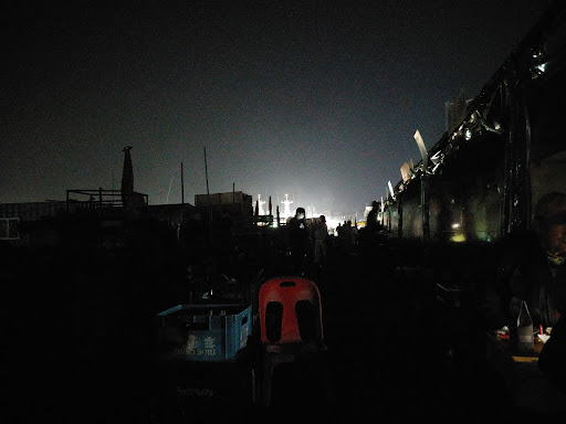 곳은 부둣가 콘크맄트 바닥에 대형텐트 3개를 이어붙인 거게들이 연이어 있는 난전입입다. 약 10~20여개 정도로 보이는 가게가 연이어 있습니다.