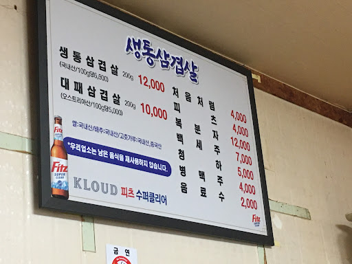 We couldn’t speak any korean, nor did we know how korean bbq works. The shop owner was really helpful regardless language barrier. We ordered nothing more than beer and pork belly. They treated us with decent seafood noodle soup. Pork belly bbq tasted awesome, so did all the side dishes(many different kinds of kimchi). Highly...