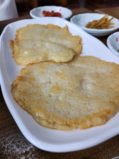 Probably my most memorable meal in Sokcho. Walking distance from Waterpia, this humble looking shop is worth the visit. Since the food they serve is mostly seafood, I believe it's Muslim friendly. Of course if you're Muslim do go at your own discretion. Everything tastes home cooked and prepared with love by the two ladies. The banchan was generous and tasty, especially the one with dried pollack. The dried pollack soup was comforting. My personal favourite was their potato pancake-it was soft, chewy and crispy. My wife loved the soondobu. The two ladies also made sure that we feel comfortable, checking in if everything was OK and chatted with us even though we could only communicate in English. Thanks to them we found out that there was a cultural festival at the expo. I felt like I was dining at a friend's home instead of a restaurant. Would definitely go again if we ever dropped by...