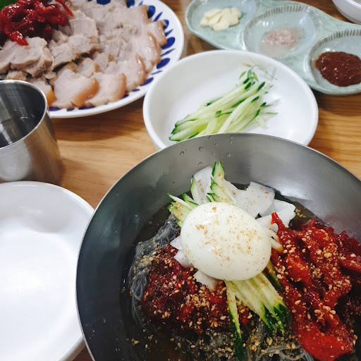 This place became one of my favorites!! I guess everyone traveling sokcho, reading this would know this kind of cold noodle called "Hwoi Neang-myeon" is very famous in Sockcho. This cold noodle and pork is really delicious I definitely recommend...