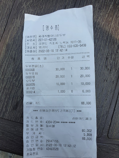 Read more예로부터 두부로 유명한 동네인 속초 초입 학사평 순두부촌에 위치한 설악산 맛집 원조재래식할머니순두부. 직접 두부를 만들어 내는 집이며 직접 만드는 집답게 고소하고 몽글한 순두부와 단단하고 엄청난 고소함, 담백함을 자랑하는 모두부를 내어 주고 있다. 또한 미슐랭이 들어오기 전 우리나라 맛집 평가의 기준이 되었던 블루리본서베이에 10여 년 간 등재된 집.