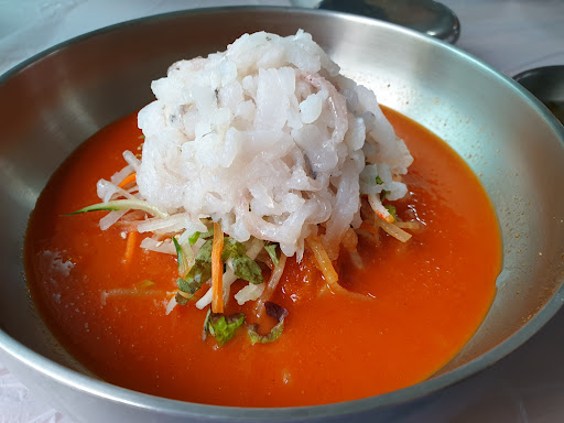 [๋ง] ๊ธฐ๋ณธ์ฐฌ 4๊ฐ์ง ์ด์๊ณผ 500ml ํํธ๋ณ์ ๋ด๊ธด ์ ๋ฌผ์ด ์ ๊ณต๋ฉ๋๋ค. ๊ฐ์๋ฏธ ๋ฌผํ์ ์ค์ง์ด ๋ฌผํ๋ฅผ ํ๋งค์ค์ด๋ฉฐ, ํ๋ฎ๋ฐฅ ๋ณด๋ค๋ ๋ฌผํ๊ฐ ์๊ทธ๋์ฒ ๋ฉ๋ด์ ๋๋ค. ๊ฐ์๋ฏธ๋ ๋ถ๋๋ฝ๊ณ ๊ณ ์ํ๋ฉฐ, ์ค์ง์ด๋ ์ซ๊นํ ์๊ฐ๊ณผ ๊น๋ํ ๋ง์ ๋๋ค. ์์ค๋ ์ด์ง ์ผํฐํ ํธ์ด๋ฉฐ ๋งต์ง๋ ์์ต๋๋ค. ์ ๋ผ๋ฉด ์ ๋์ ๋งต๊ธฐ๋ก ์๊ฐํ์๋ฉด ๋๊ฒ ์ต๋๋ค. ์ ๋ง ๋ง์กฑ์ค๋ฌ์ด ์์ฌ์๊ณ ๋ค์์ ์์ด๋ฅผ ์จ๋ค๋ฉด ๋ค์ ๊ฐ๊ณ ์ถ์ ์ ๋์ ๋๋ค. ๋ฐฅ๊ณผ ๋ฉด์ฌ๋ฆฌ ๋ ์ค ์ ํ์ด ๊ฐ๋ฅํฉ๋๋ค.