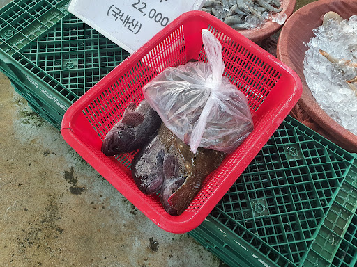 Read more어디가서 이렇게 싼 값에 회를 먹어 본 적이 없는 것 같습니다. 막상 구매할 때는 중구난방이라 좀 애매했는데 회뜨고 숙소와서 열어보고 너무 양이 많아서 먹느라 고생했습니다. 광어 3kg, 대하 1kg, 조개 1kg 샀는데 해제하고보니 광어는 만두 싸주는 플라스틱 박스로 3박스 가득 나오고 대하는 소금구이 2번 해먹을 양이 나왔습니다. 조개는 소금구이 먹었는데 철판가득 올렸네요. 이렇게해서 8만원 나왔습니다. 상추양념 세트 5000원짜리 포함해서요. 레알 엄청 쌉니다. 다만 회뜨는 곳 위생상태가 맘에 걸려서 별 반개, 친절도에서 별 반개 뺍니다. 내성적인 분들은 가면 새치기 오지게 당하다가 늅늅이 될 수 있을 것 같아요. 약간 시장통 분위기라 주문부터 회치는 것까지...