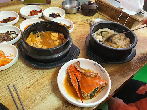 Read more비싸고 맛없다. 별 하나도 아까운데, 최저가 별 한개라 어쩔수 없이...게국지를 시켰는데, 꽃게탕이 나왔다. 근데 콩나물반이다. 꽃게는 냉동했던 묵은 꽃게였는지 살이 고무처럼 질겼다. 살다살다 고향서 이렇게 골은 꽃게는 처음이었다. 간장게장도 먹었는데...완전 땡땡 얼어서 나왔다. 먹는데 이가 시릴 정도였다. 너무 얼어서 맛도 하나도 안 느껴졌다. 참고로 맞은편 커플은 칼국수 시켰는데 안 익어서 나와서 더 끓여달라고 함. 그러다가 끝내 여자는 수저와 젓가락을 놓고 한술도 안 뜸. 말이 길었는데, 한마디로 욕 나오는 식당. 이런 식당은 국민 건강권...