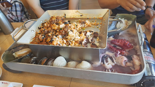 Read more꼬막비빔밥 맛나요~ 갑자스런 모임에 급하게 잡은건데 용궁철판은 해신탕과 비슷해요 솔직히 걱정했는데 꼬막비빔밥 먹으러 따로 오고싶다는 지인들때문에 다행스러웠던곳 여러가지 해산물과 닭, 칼국수, 비빔밥등 중사이즈로 주문했는데 가격이 조금 비싸지만 다들 무난하게 먹을수 있는거라 추천합니다 뷰는 해안도로를 바라보는 위치이나 앞에 건물이있어서 가려지네요