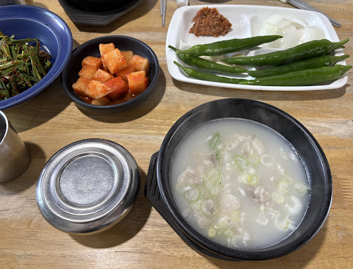 농도 짙은 진득한 국밥은 아니예요. 하지만 잡내 없고 고기가 비계와 적당한 비율로 넉넉하게 들었고 부추무침 푸짐히 넣어 먹으니 맛있습니다. 가게 분위기도 국밥집 같지 않은 느낌이 좋구요. 사장님 부부 매우 친근하고 친절하시고 식사 후에 직접 만드시 식혜까지 서비스...