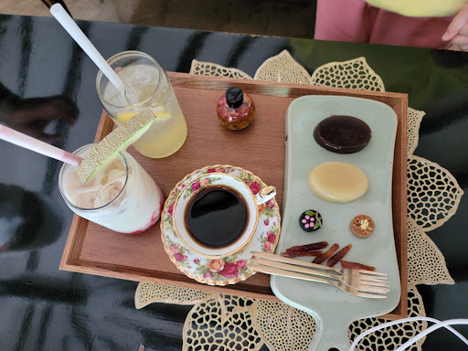 Read more정말 분위기 좋고 멋드러진 카페였습니다. 옛 주택을 개조한 것 같은 인테리어인데 마당도 그렇고 내부, 외부좌석까지 정말 좋았어요. 날씨 좋은 날 바깥에서 마시면 최고일 것 같습니다. 전 겨울에 방문하여서 내부 앉아서 바깥 풍경을 보면서 차를 마셨는데 정말 좋았어요. 디저트는 생각보다 좀 빈약해요. 호불호가 갈릴만한,,,,? 하지만 차는 아주 맛있고 좋았습니다. 따듯한 뱅쇼가 한 잔에 7000원인데 350ml잔에 반 정도 주시더라고요. 가격도 양도 깜짝 놀랐지만 맛있긴했습니다. 캐모마일차는 티백없이 꽃잎이 그대로 들어갑니다. 그만큼 향은 좋지만 거름망이 없어서 식감은 별로였어요. 하지만 분위기가 너무너무 좋아서 무조건 재방문할것같아요! 음료는...