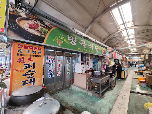 함양군청에 출장갔을 때 시장에 들려 점심을 먹었습니다. 인터넷에 소개된 맛집 중 하나인 병곡식당. 나중에 함양군청 공무원들로부터 '우리도 종종 가는 맛집'이라고 설명을 들었습니다. 코너에 있는 집이라 입구가 두 군데입니다. 정면이 아닌 옆쪽 입구로 들어가니 사장님이 모르십니다. 그래서 사장님을 불러서 주문을 해야 했습니다. (정면 입구에는 순대국을 끓이는 화로 등이 있습니다) 코로나-19가 다시 유행하기 시작한 2021년 겨울이었습니다. 그래서 손님이 유난히 적었던 것 같았습니다. 메뉴판에 '점심 특선'이라고 적혀있어 여쭈어보니 머리국밥이라고 합니다. 저는 순대국밥이 먹고싶어 갔기 때문에 굳이 그걸로 먹지는 않았습니다. 전통시장 내의 식당이어서 그런지, '곱배기'나 '특' 메뉴는 없었습니다. 그냥 양이 푸짐할 뿐입니다. 순대국 안의 순대가 매우 부드러웠습니다. 왜인지는 순대를 잘 들여다보니 알 수 있었습니다 (사진 참조). 순대에 선지가 들어있는 겁니다. 잘 먹고, 완식했습니다. 다만, 돼지 냄새가 약간은 났습니다. 저에게는 문제가 없었지만, 깔끔한 맛을 고집하는 분이라면 거부감이 들 수도...