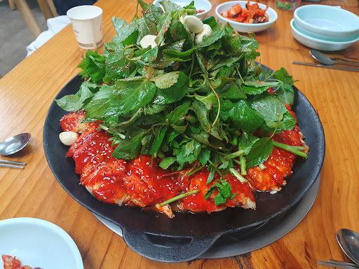 근데 화악 끌리는 맛있는 맛은 아니예요 뭔가 좀 부족해서 제피를 추가해 보지만 그래도 살짝 부족...무언가 매력이 부족한 느낌 이곳은 참게메기매운탕을 많이 먹는다더라구요 담에 그걸로...